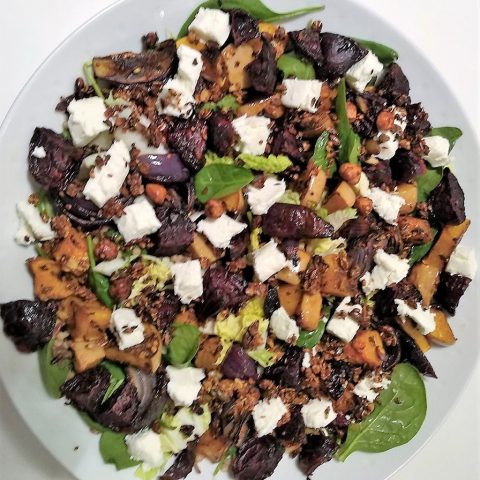 Roast beet, butternut squash and goats cheese salad,
