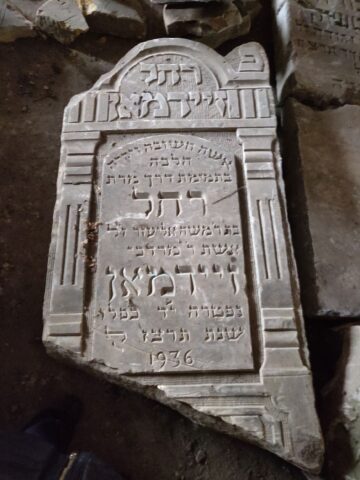 Salvaged headstone from the Brest-Litovsk Jewish Cemetery Photo credit: Debra Brunner 2020