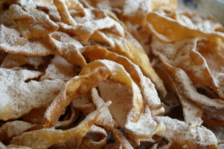 - Italian: chiacchiere (“chatter”), bugie (“lies”), cenci (“rags”), crostoli, frappe, galani, grostoli, sfrappole, nocche