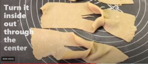 Then cut into strips 2-4cm long and create a cut in the centre of each piece and turn it inside out through the centre. You can make them large or small (I recommend watching the video above to see how to do this).