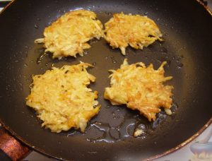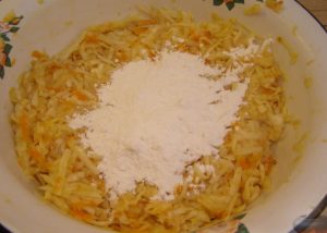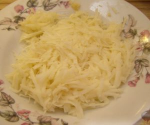 Peel potatoes, wash, grate.