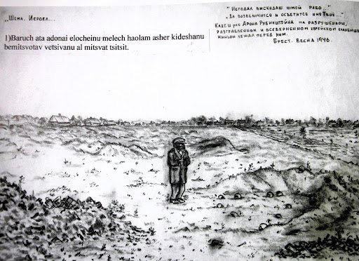 Hand drawing eyewitness account of what was left of the cemetery after the war in 1944, by Vladimir Gubenko