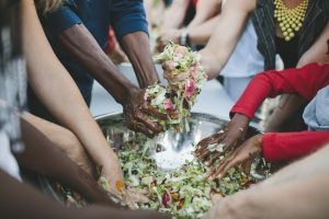 People working collaboratively at a Sandor Katz fermentation workshop.