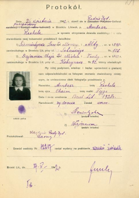 It is believed that of the six million Jews who were murdered by the Nazi’s during the Holocaust, 2.7 million were in the Soviet Union. This is Holocaust history most know little about and it is of vital importance in understanding the Holocaust as a whole. For the participants in the UK, as a first foray into Holocaust history, beginning their journey in the east will give them a much more in-depth understanding when they come to learn about the concentration camps and ghettos in western Europe. For the UK parents, this was eye-opening, with many saying that this was all new information for them. Our UK participants received monthly materials by post followed by an online 90-minute session. In the final pack, each participant received a copy of a unique never-before-seen document, real hidden history, protocols relating to Jewish children who perished in Brest. These are documents that the Nazis made the Jews carry, and which were their transfer passes into the ghetto. Each protocol is written in Polish (Brest was a part of Poland during the inter-war years) and shows the name of the child, a photograph, a fingerprint, their address, their parent’s names and the names of two witnesses who were needed in order to register the protocol.